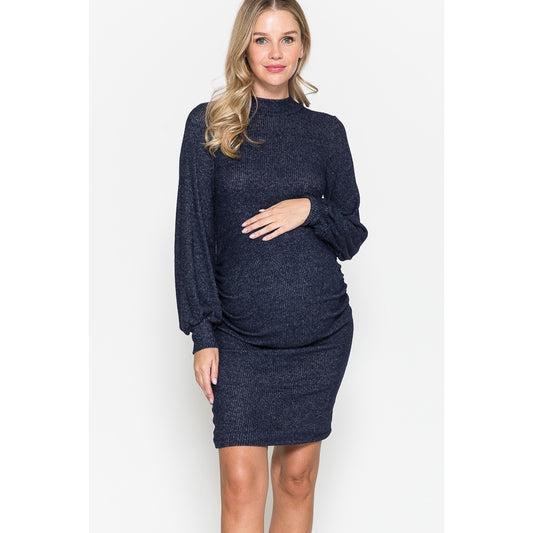 Mock Neck Puffed Long Sleeve Bodycon Dress