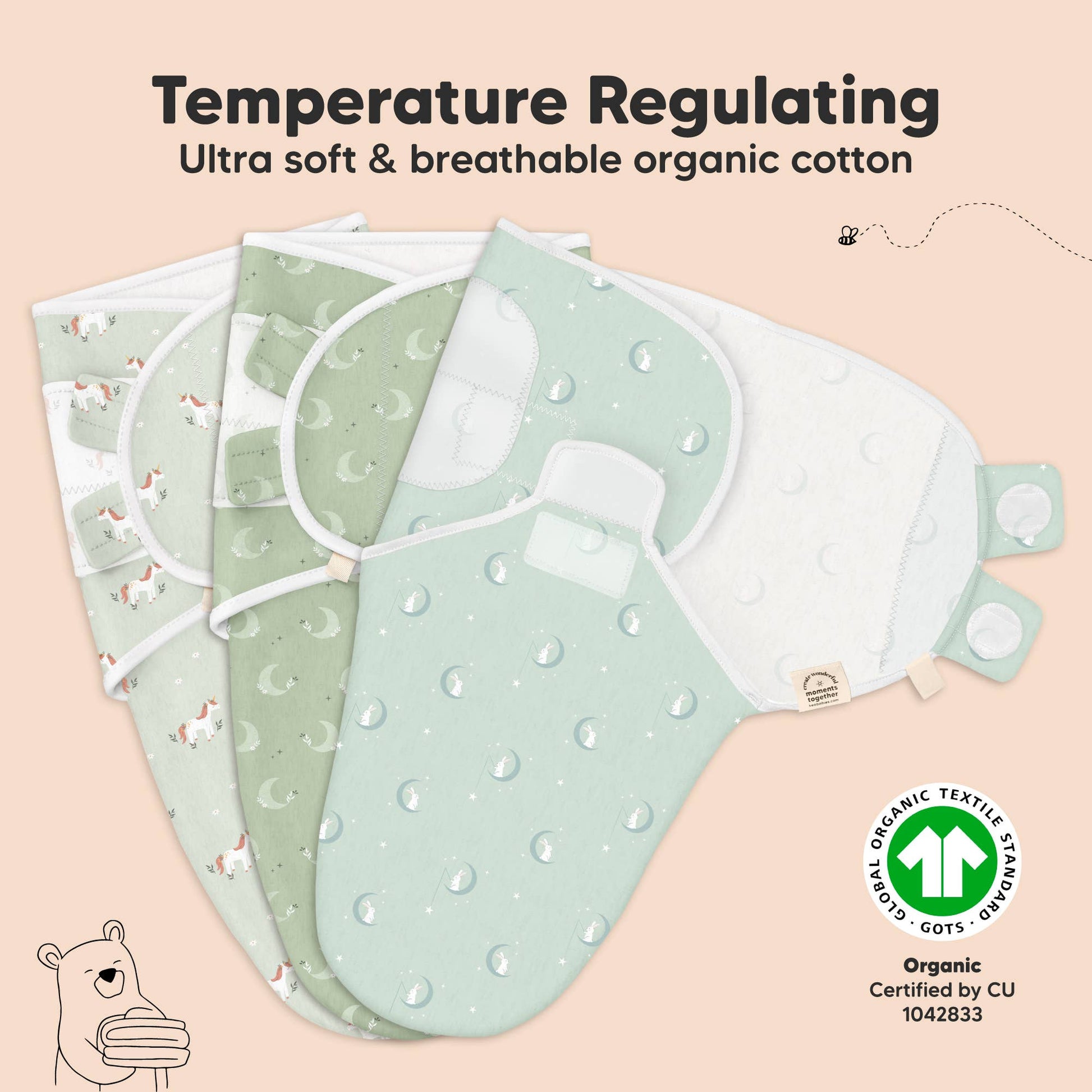 - Newborn swaddles made with 100% organic cotton