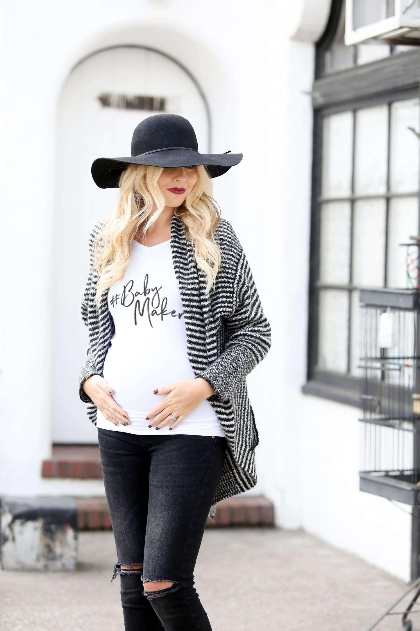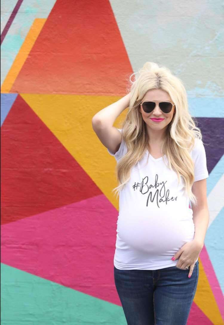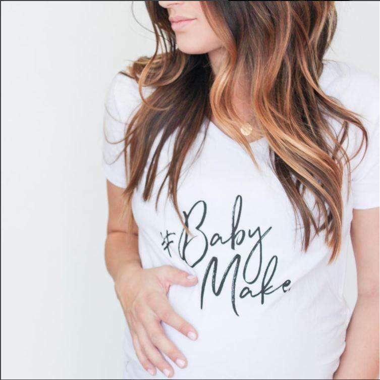 Celebrate the journey to motherhood with the to: little arrows #BabyMaker Maternity Shirt, available at Delilah's Maternity. This fun and cheeky shirt features the hashtag "#BabyMaker" printed across the front and flattering side-ruching, embracing the excitement of pregnancy with style. Crafted for comfort and flair, it pairs perfectly with your favorite maternity bottoms for a casual and trendy look. Embrace the joy of expecting with the fashionable #BabyMaker Maternity Shirt from to: little arrows, found at Delilah's Maternity.