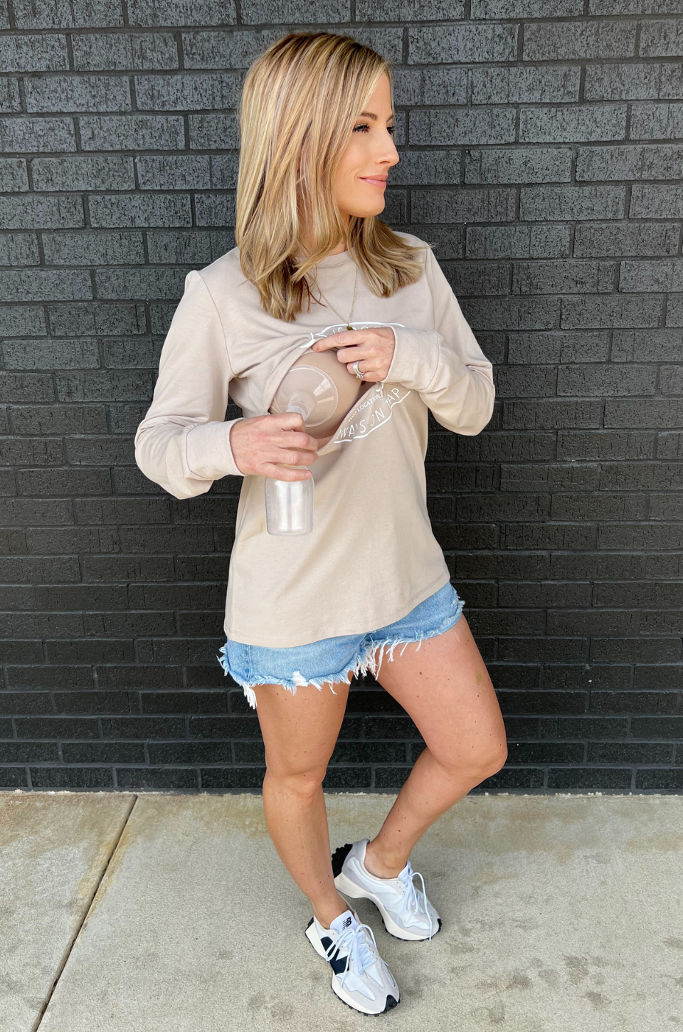 Celebrate the special bond of motherhood with the Nursing Queen Mama's Boobery Nursing Top, available at Delilah's Maternity. This stylish and functional top features a playful "Mama's Boobery" design with discreet nursing access, perfect for breastfeeding on the go. Crafted from soft and breathable fabric, it offers comfort and convenience for nursing mothers. Embrace motherhood in style with the fashionable Mama's Boobery Nursing Top from Nursing Queen, found at Delilah's Maternity.