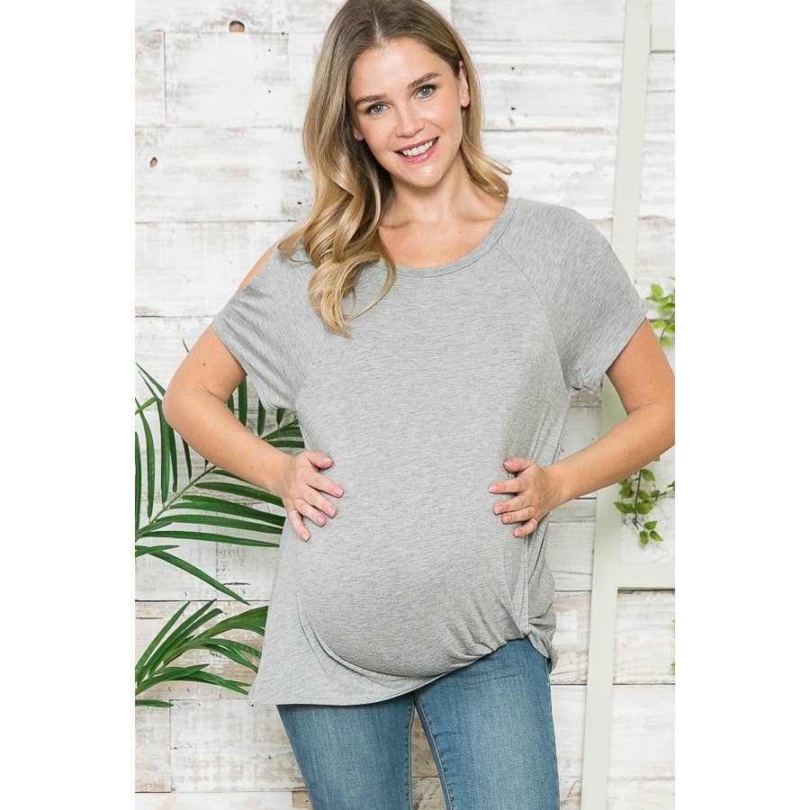 Maternity Basic Summer Crew Neck Solid Top with Front Knott