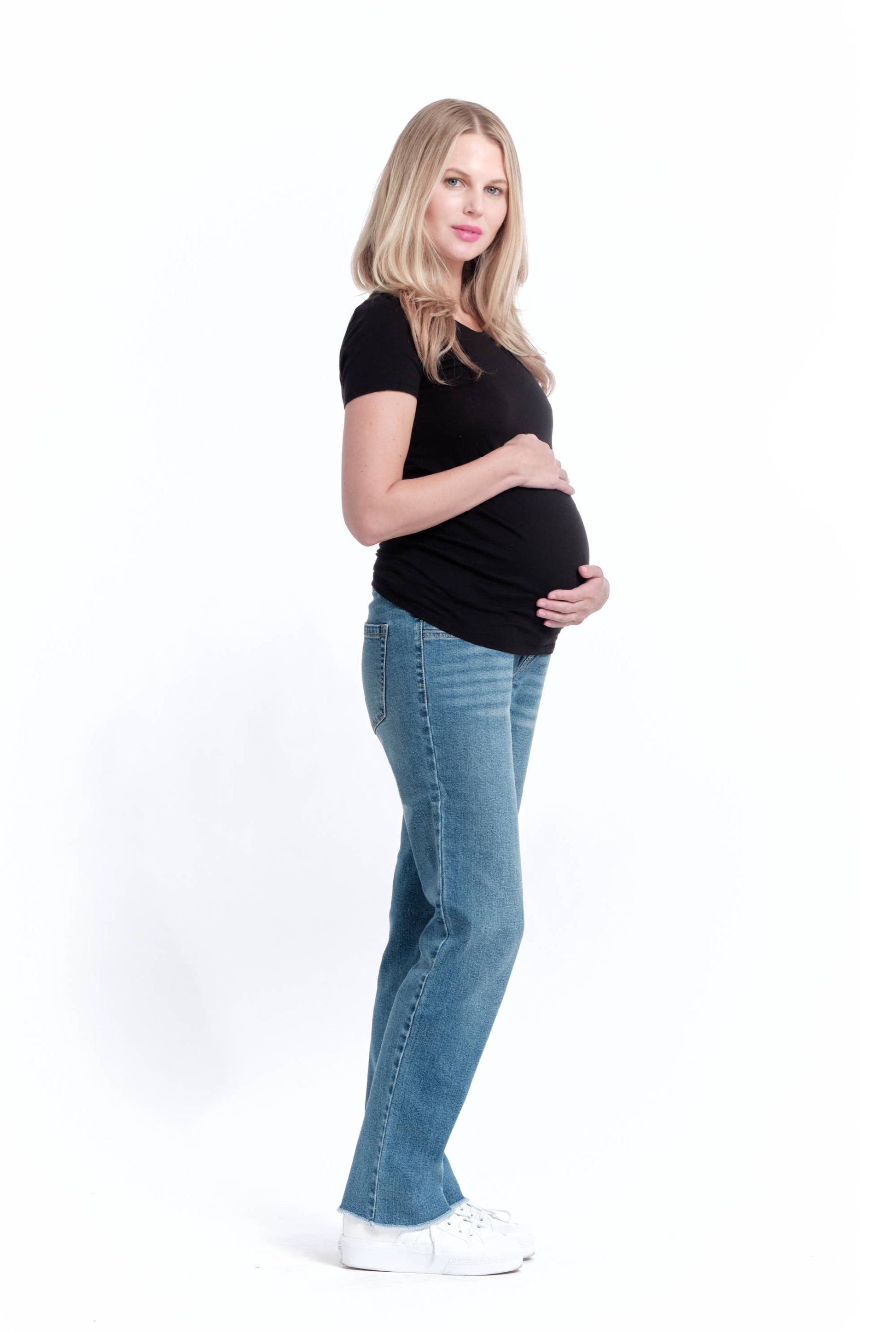 Timeless, flattering, and made to fit beautifully through every stage of motherhood — the Maternity Straight Leg Jean with Bellyband by 1822 Denim delivers that perfect blend of structure and stretch. Designed with a premium denim feel and a smooth over-belly panel, these jeans support your growing bump while maintaining the classic look you love.