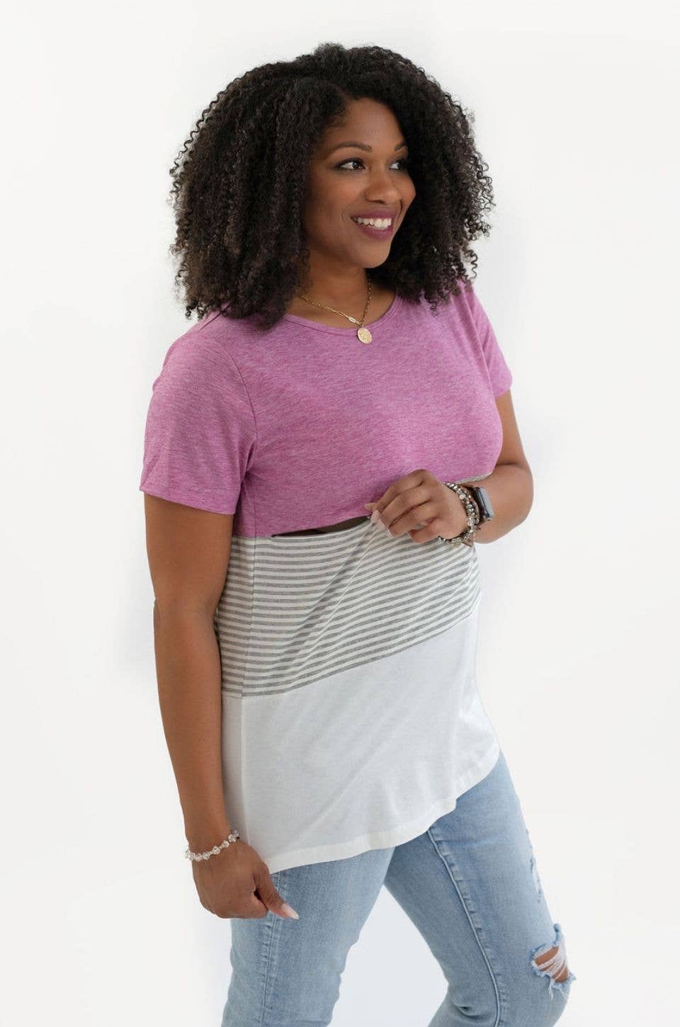 Discover comfort and style with the Nursing Queen Nursing T-Shirt - 3 Block Colorblock, at Delilah's Maternity. This chic and functional shirt features a trendy colorblock design with discreet nursing access, ideal for breastfeeding mothers. Crafted from soft and breathable fabric, it offers both comfort and functionality for everyday wear. Elevate your nursing wardrobe with the fashionable Nursing Queen Nursing T-Shirt - 3 Block Colorblock, available at Delilah's Maternity.