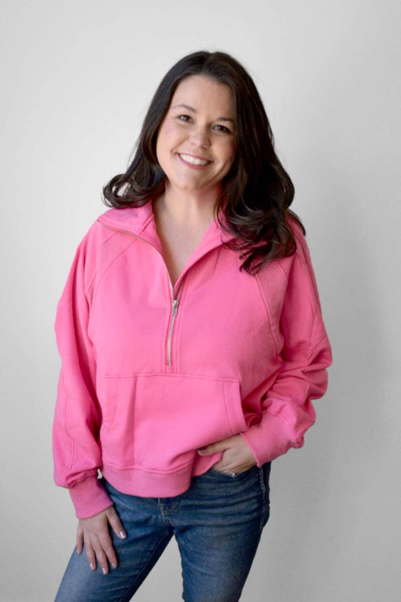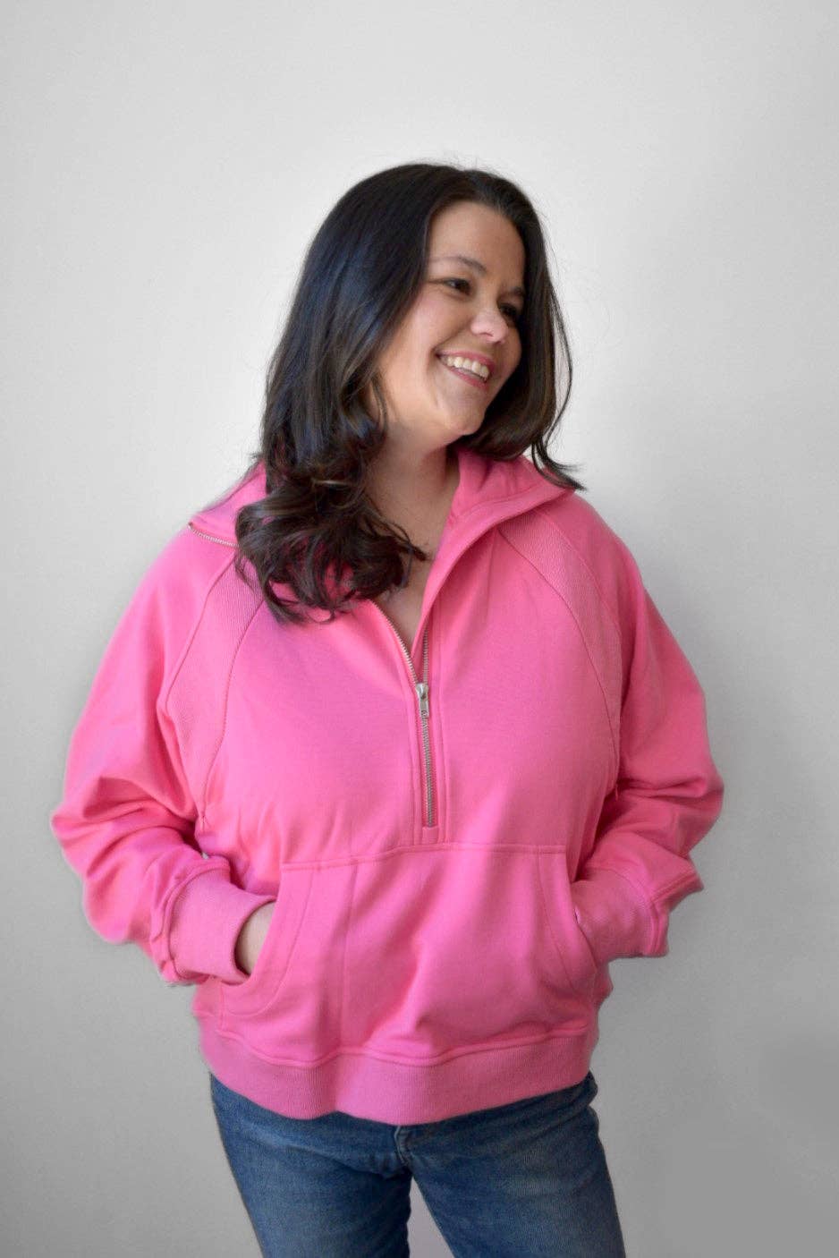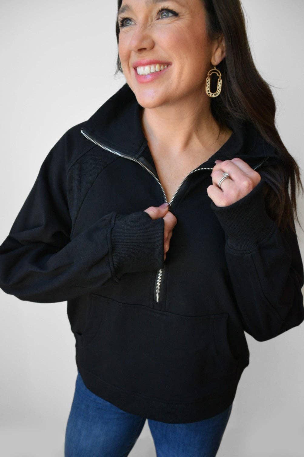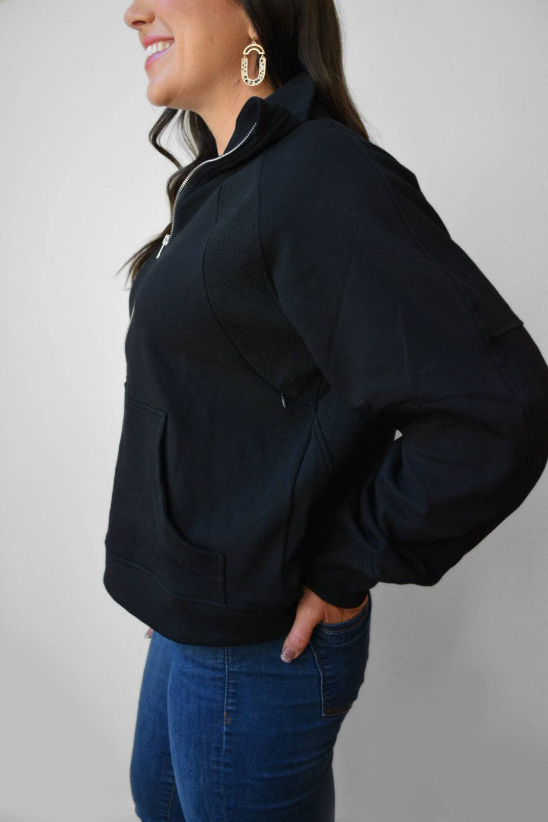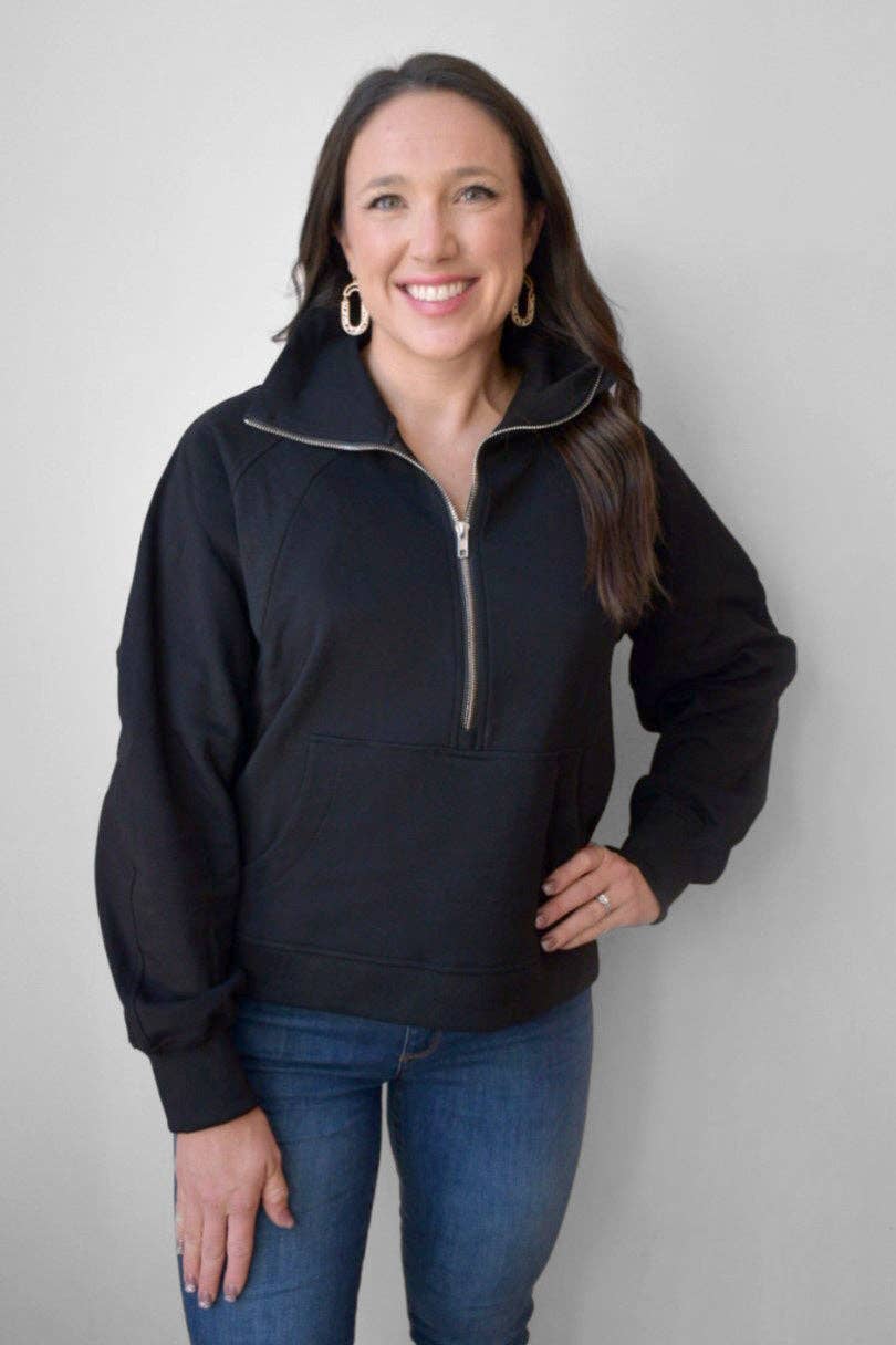 Hidden invisible zippers in the ribbed panel of this sweatshirt add new and improved functionality to everyone's favorite 1/2 zip sweatshirt silhouette. Whether you're nursing pumping, or just love a 1/2 zip sweatshirt you'll adore this new release from Movemama. With a cozy and relaxed fit you'll find yourself reaching for this sweatshirt everyday. The simplified sizing of this sweatshirt is due to the oversized silhouette.