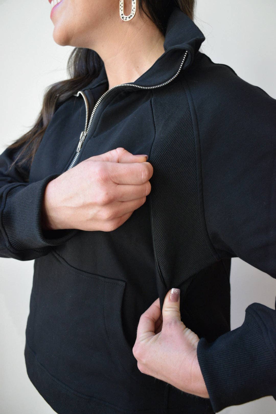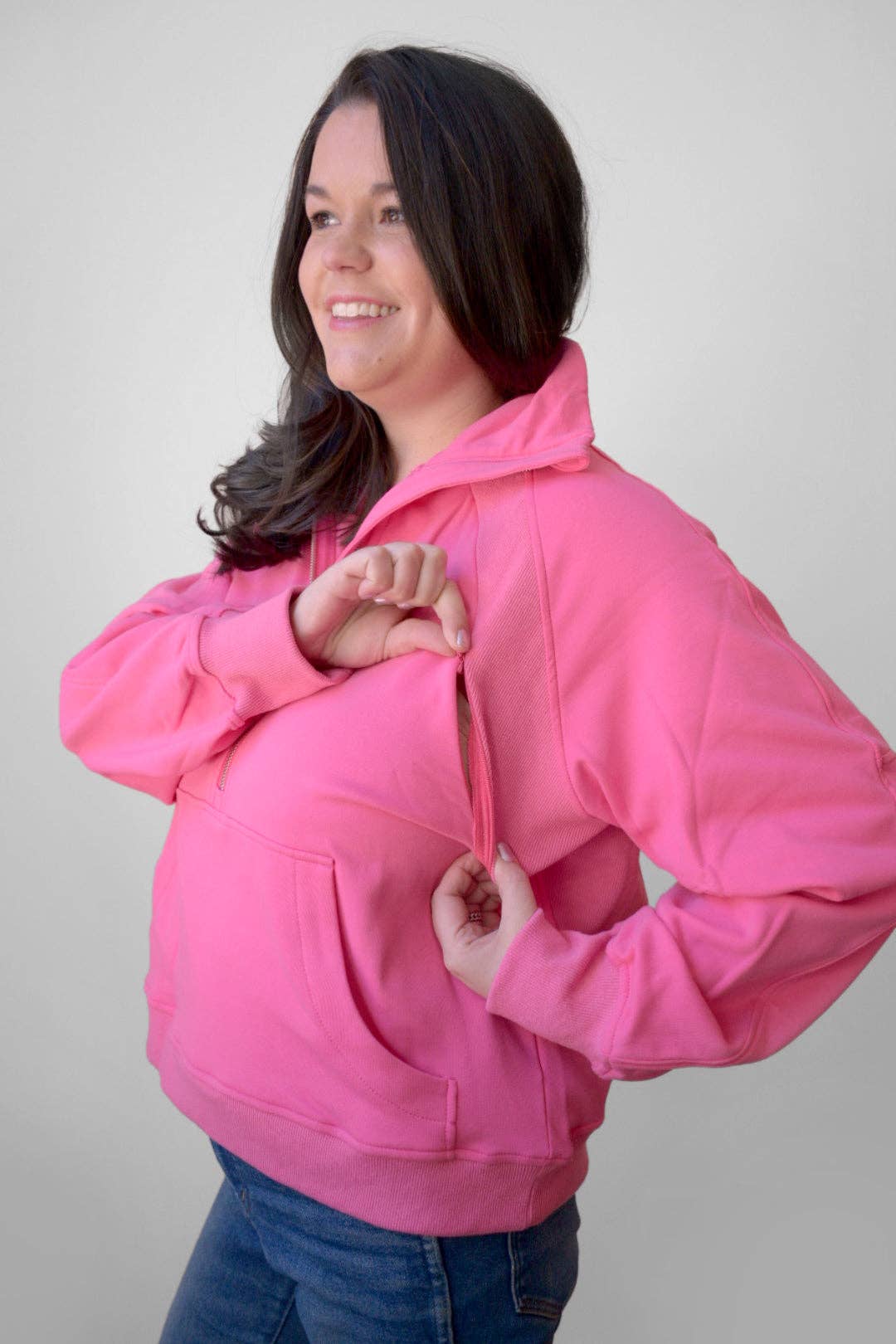 Oversized Funnel Neck Three Zip Breastfeeding Sweatshirt