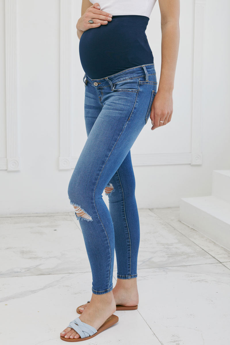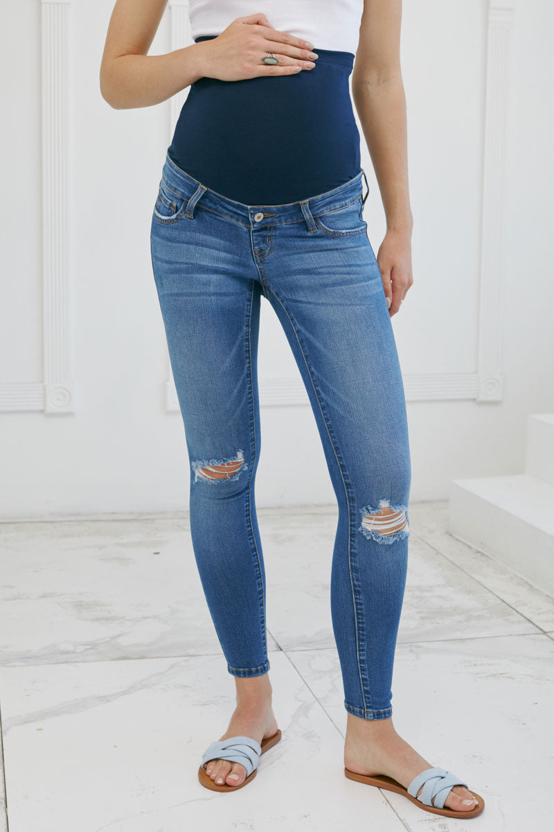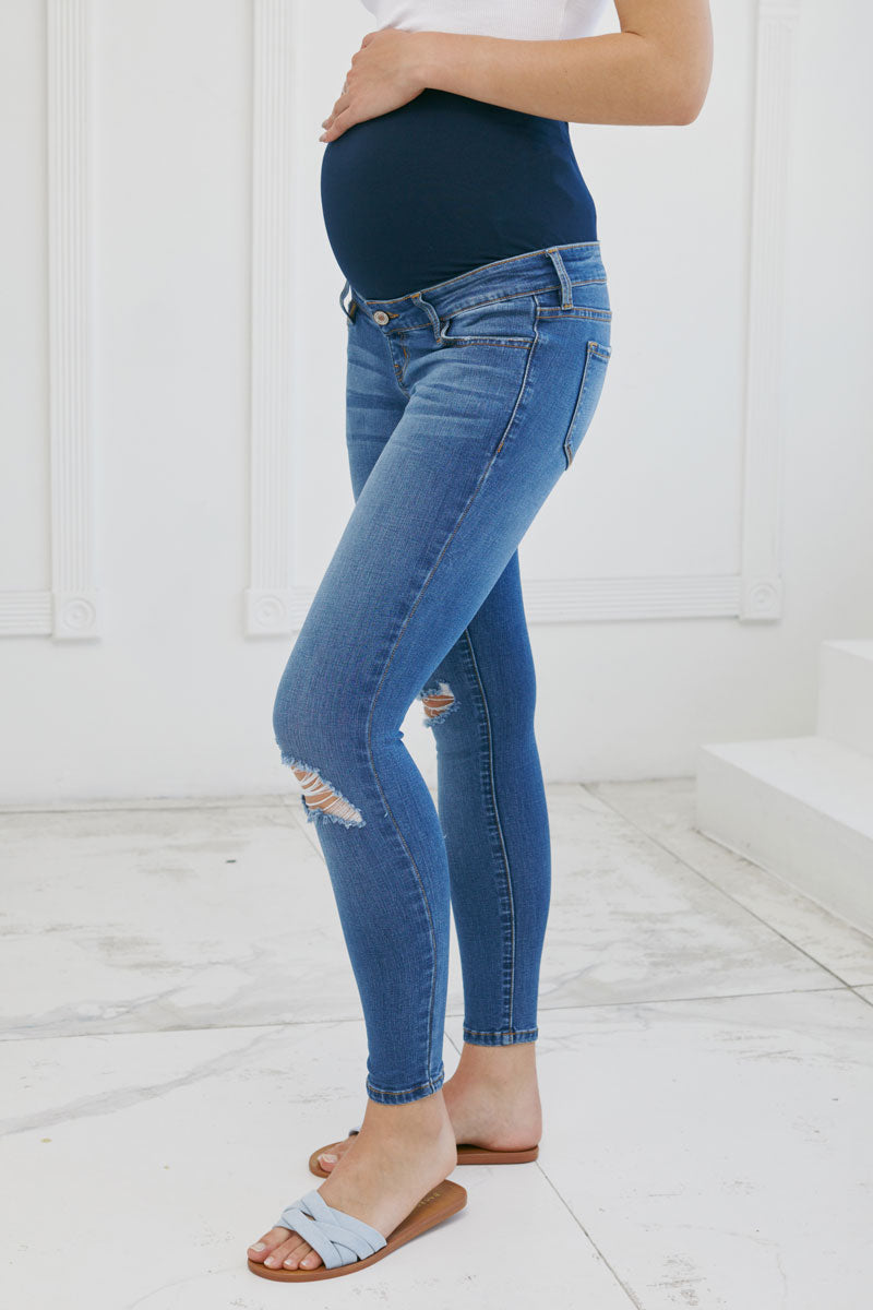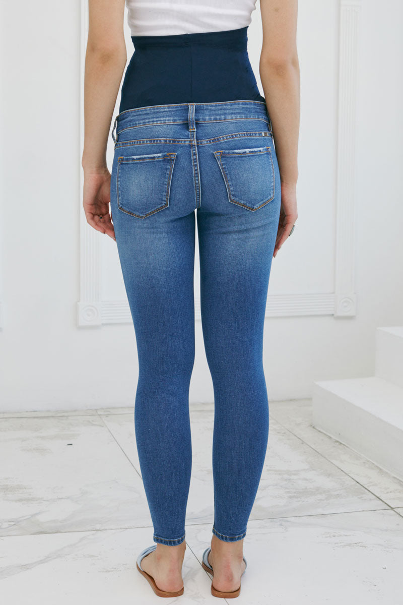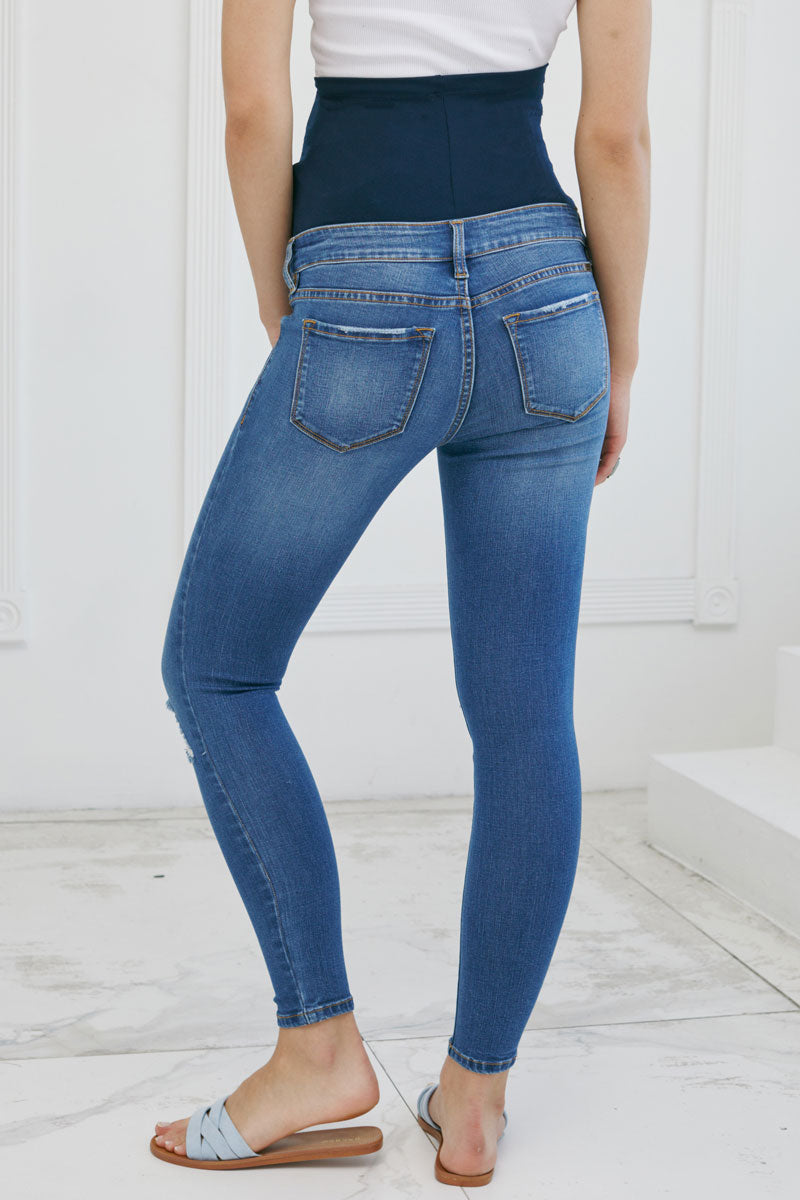 The Rainie Maternity Jeans are made with super-stretch denim that's soft, breathable, and flexible. Features and over-bump elastic waistband.