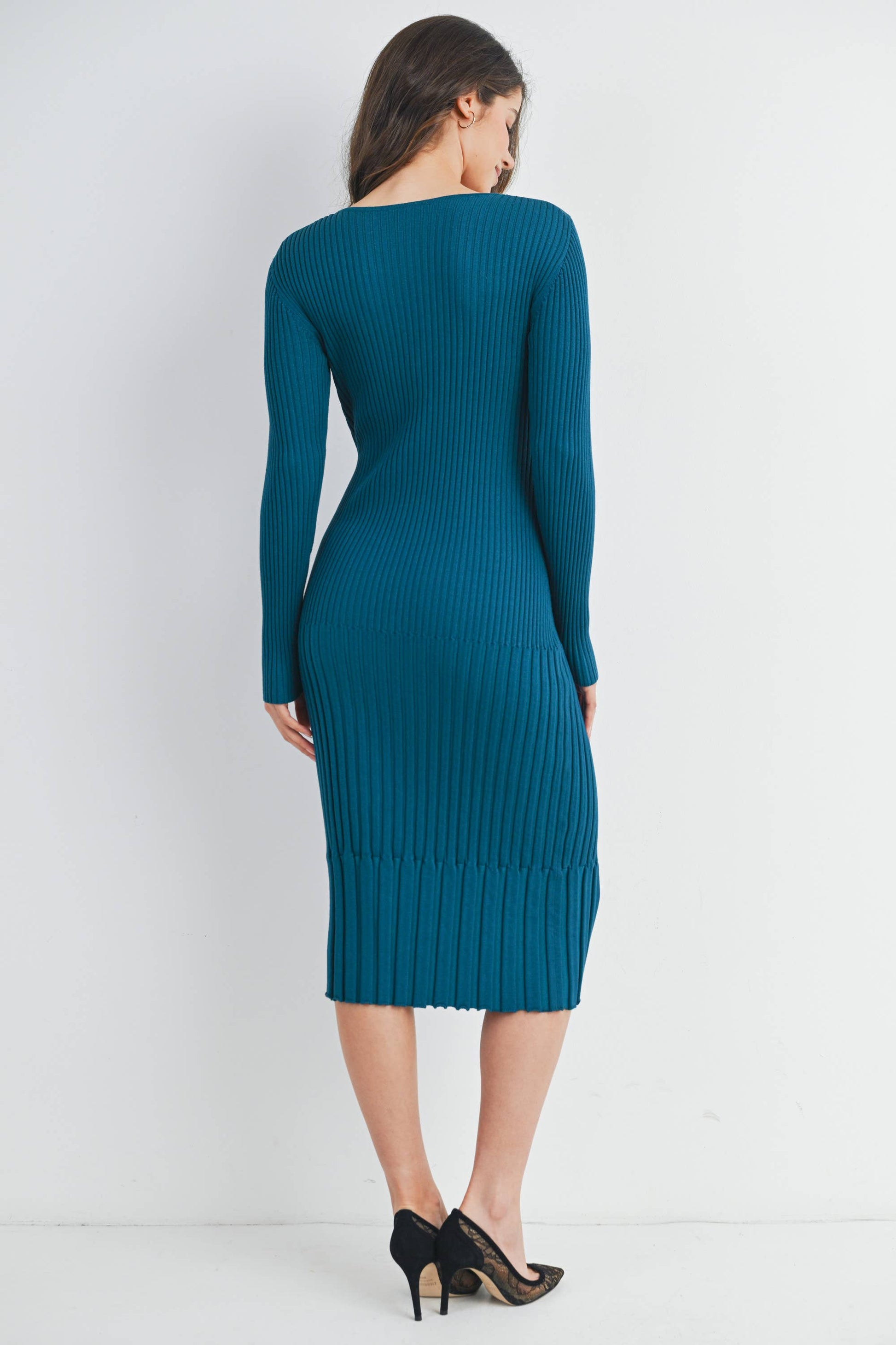 Ribbed Knit Long Sleeve Maternity Midi Dress