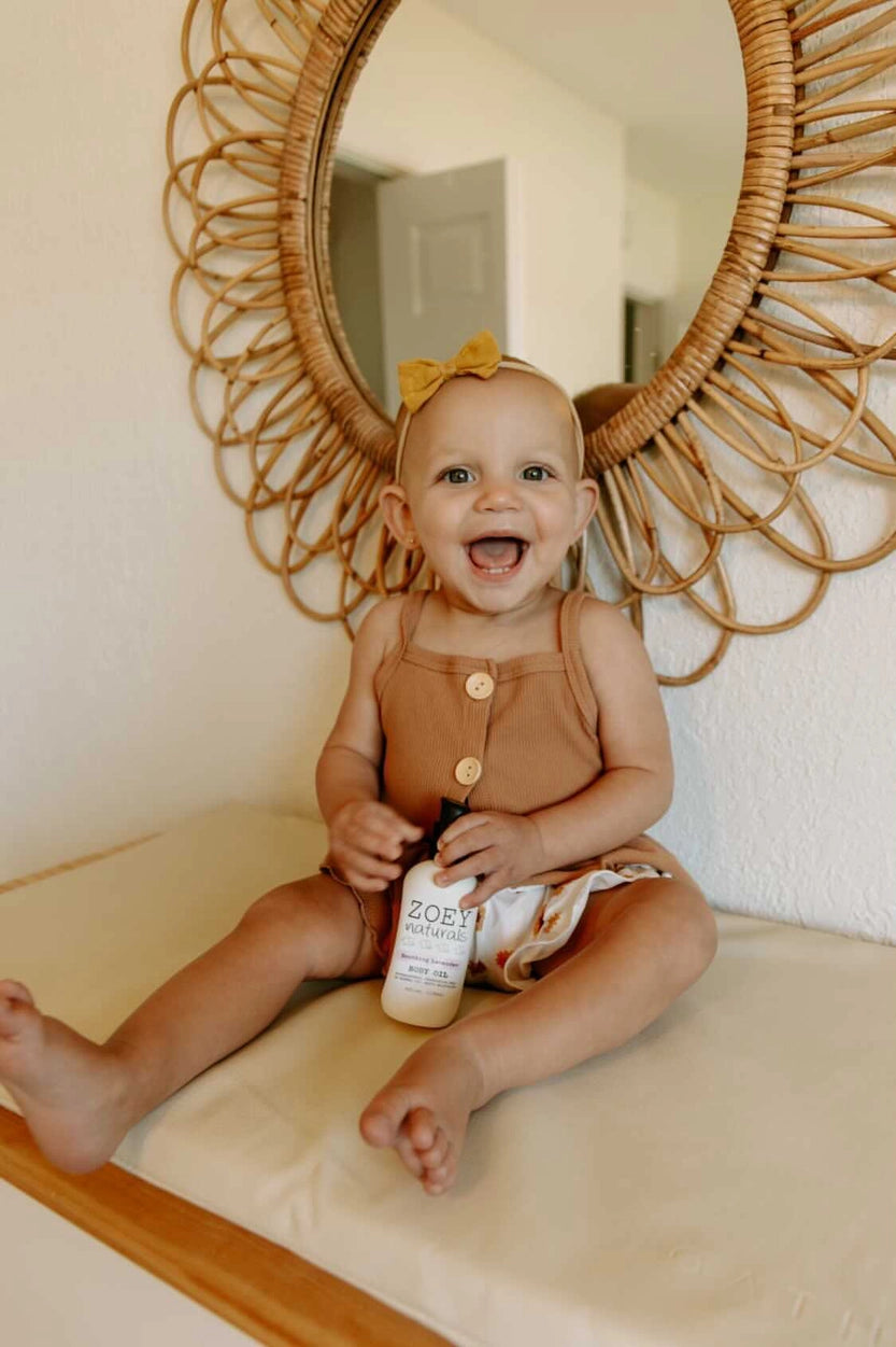 Indulge in the tender care of Zoey Naturals Soothing Lavender Body Oil, available at Delilah's Maternity. Create precious bonding moments with your baby while nourishing their delicate skin with the calming essence of lavender.