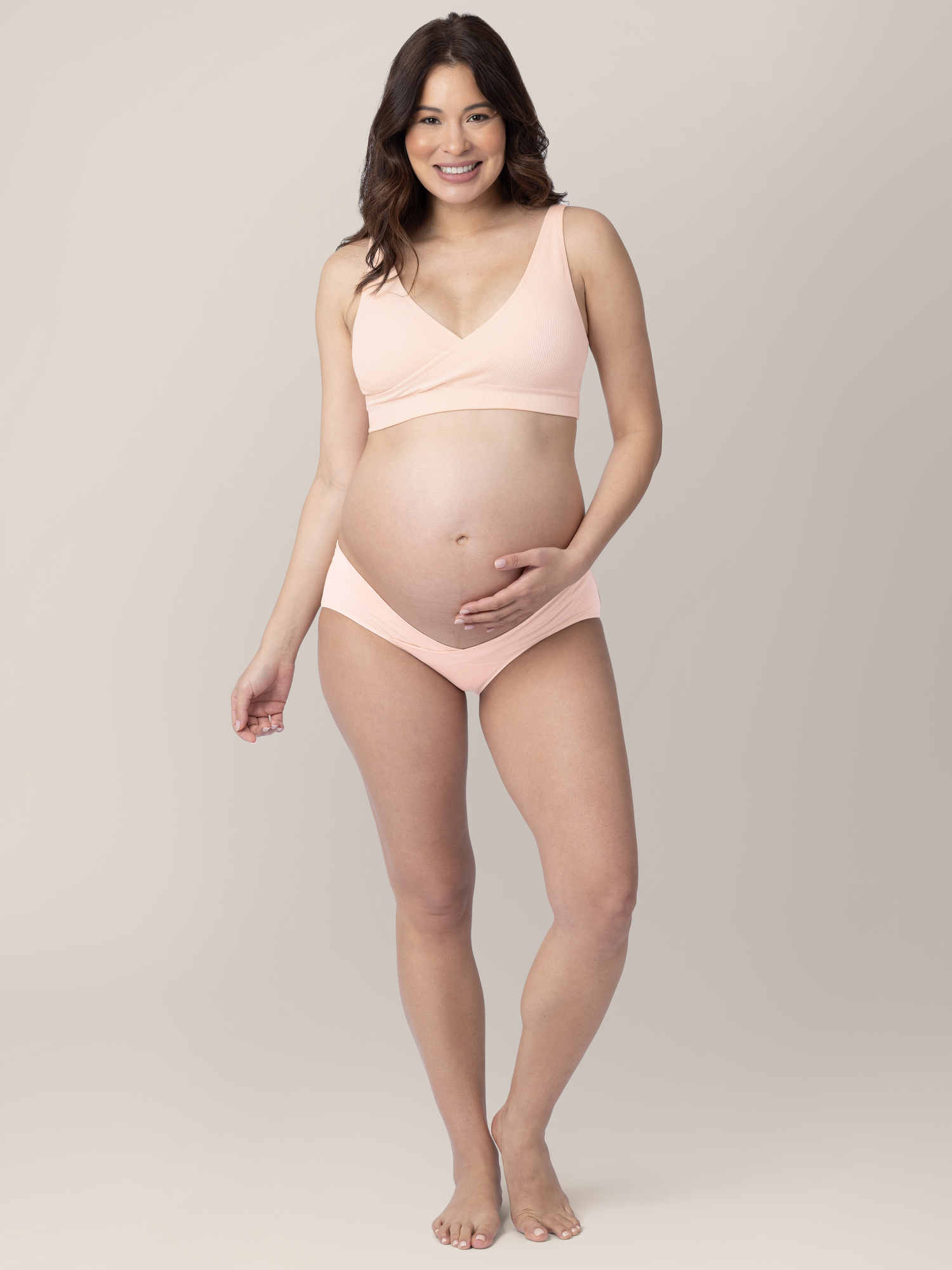 The stretchy fabric moves with you and feels gentle on sensitive pregnancy and postpartum skin.